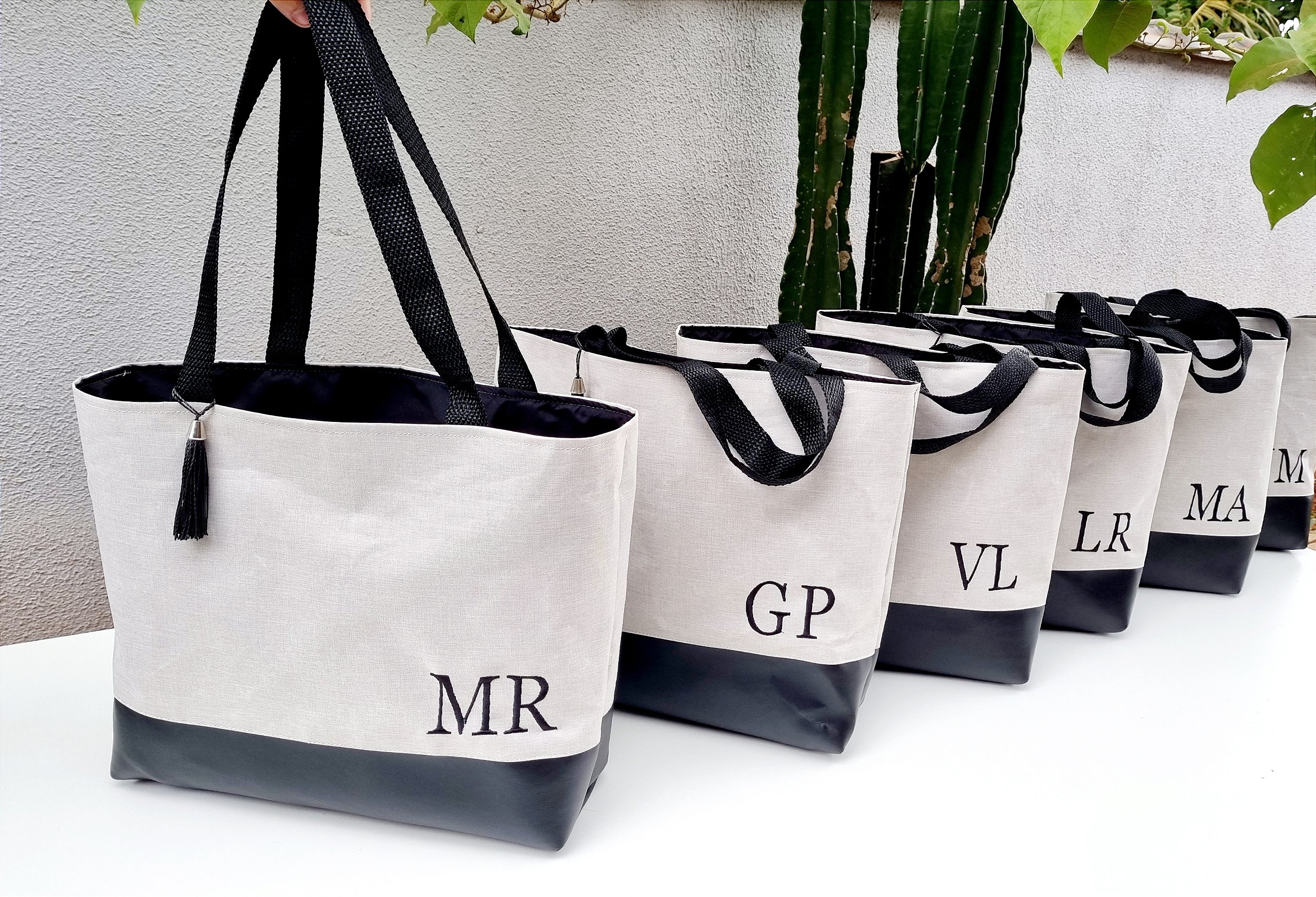 01 - Bolsa em Linho com estrura em sintético, fundo em matérial sintético colorido,(azul marinho ou preto).